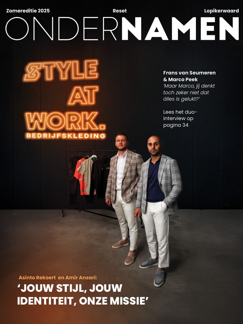 Vorig jaar heb je in OnderNamen het verhaal van de vrienden Amir en Asinto al een beetje kunnen lezen: ze begonnen ooit een streetwearmerk en door vraag uit de markt evolueerde dat in een professionele partner in bedrijfskleding. ‘Tijdens corona veranderde het online koopgedrag en zakte onze streetwearverkoop in’, legt Asinto nog eens uit. ‘We kochten een transferpers en gingen zelf aan de slag met bedrukte shirts. Al snel klopten de eerste zzp’ers aan, toen bedrijven, en zo rolde het langzaam richting de B2B-markt.’ Inmiddels levert StyleAtWork bedrijfskleding aan uiteenlopende klanten: van bouwbedrijven tot zorginstellingen en van installateurs tot transport. Dat doen ze op hun geheel eigen manier: niet als webshop, maar als betrokken partner die meedenkt, ontwerpt, levert én beheert.